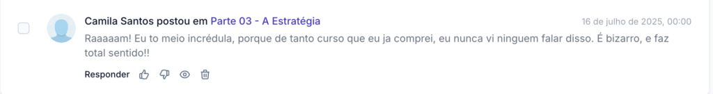 Suporte dentro da área de membros, leio e respondo todo mundo.