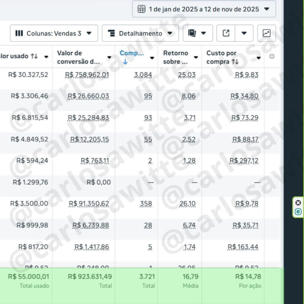 Eu mostro publicamente alguns dos meus resultados com a minha estratégia que uso desde 2018 para ter retornos expressivos com tráfego pago em 2026. Pode ver que são resultados que tenho a muito tempo, é só pesquisar na internet posts meus novos ou antigos.